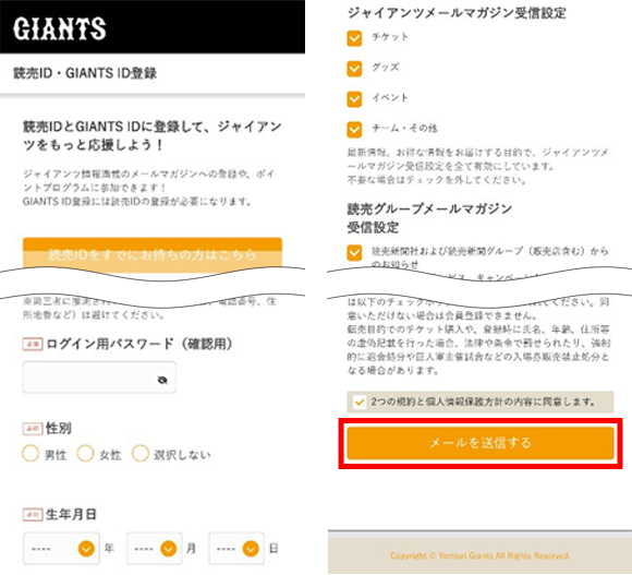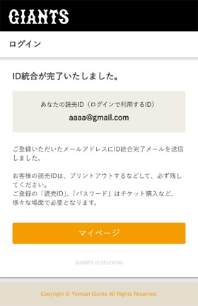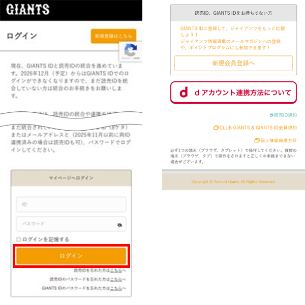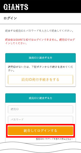 GIANTS ID、読売IDともにお持ちの方(読売IDでログイン)