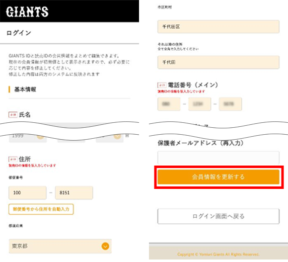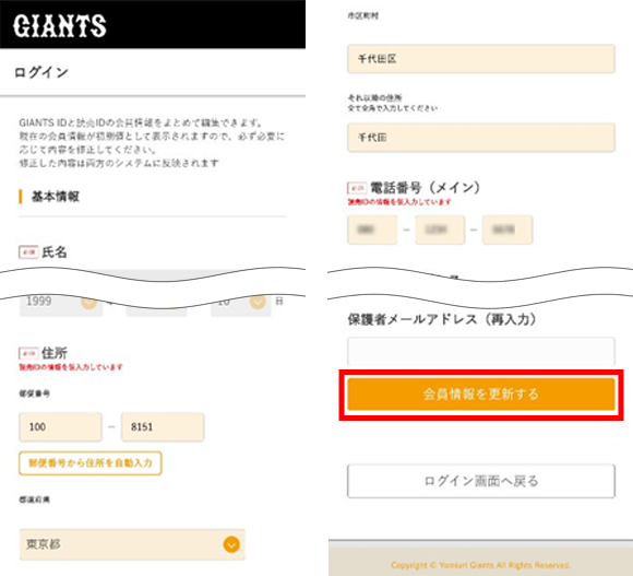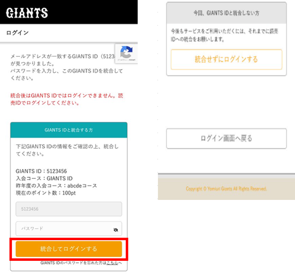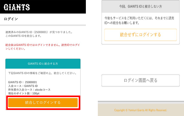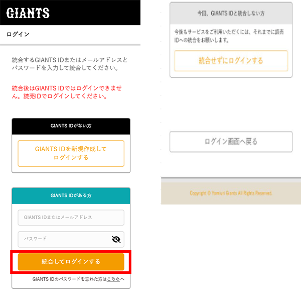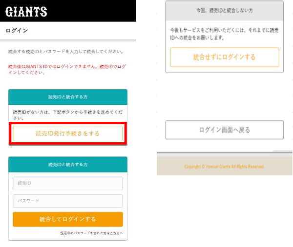GIANTS ID、読売IDともにお持ちの方(GIANTS IDでログイン)