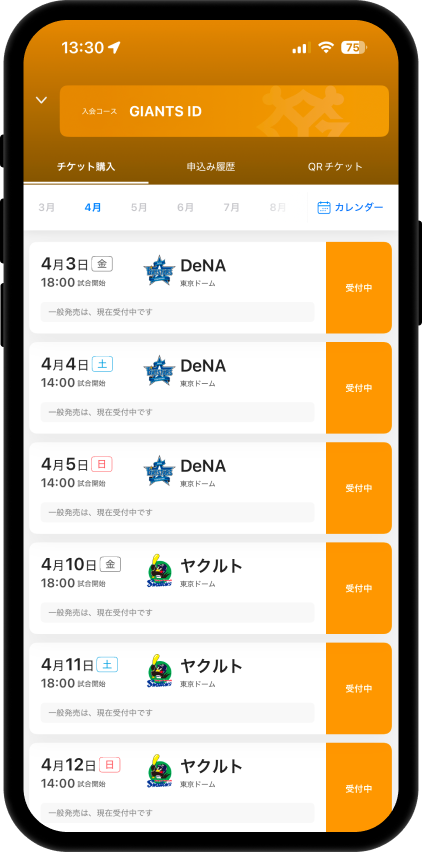 東京ドーム公式戦はもちろん、ファーム・リーグ公式戦チケットもスムーズに購入できます!