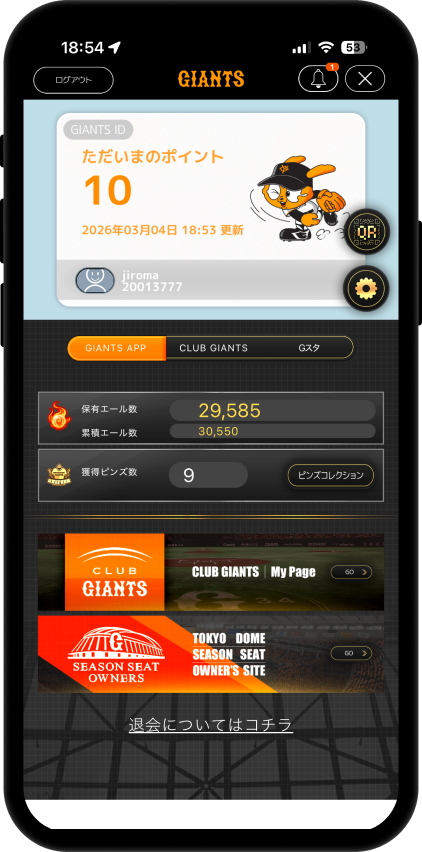 GIANTS APPとGスタを連携することで、特別なカードをゲットしよう。