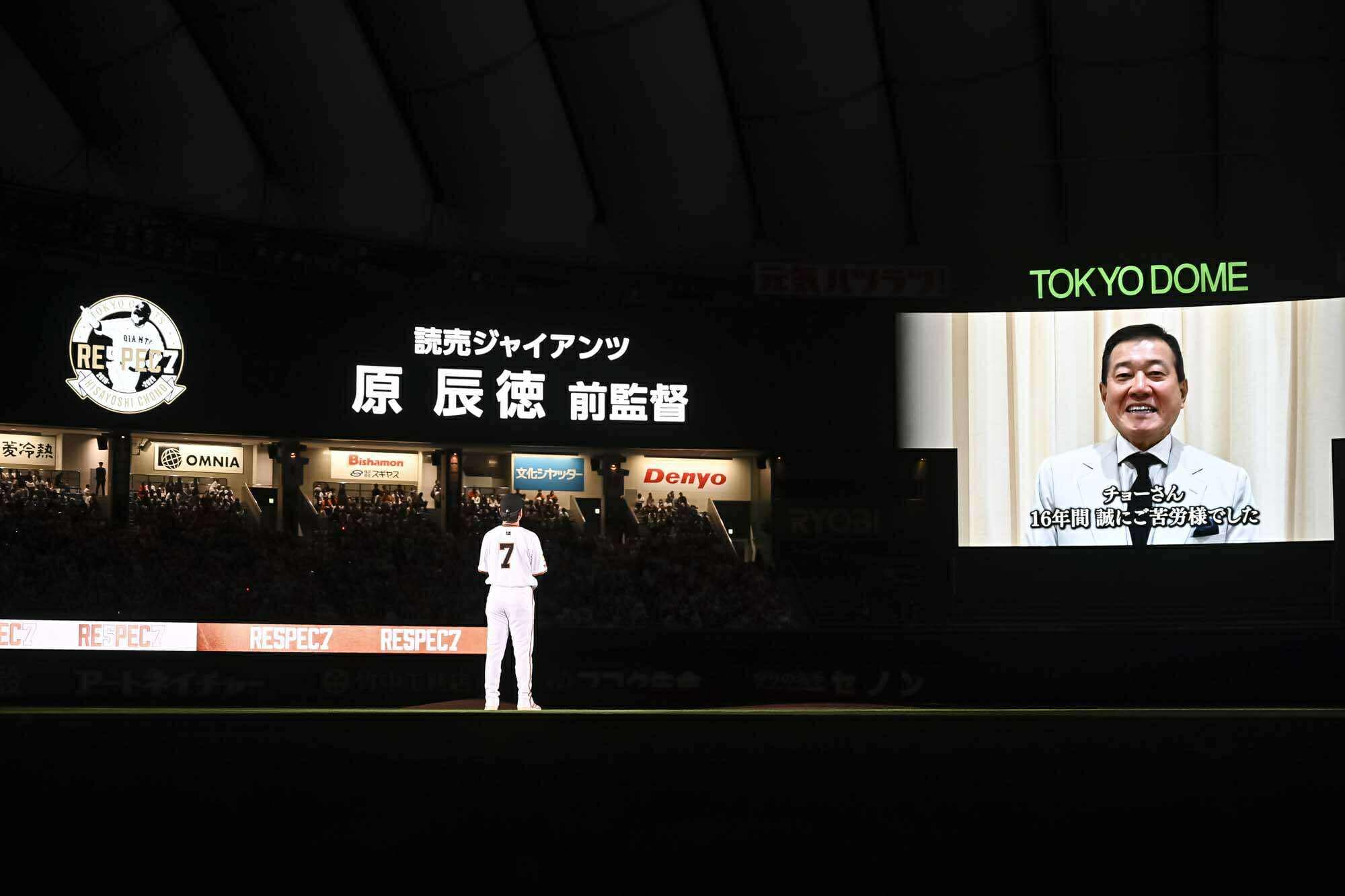 まず、長野選手の16年の活躍を振り返る特別映像がスクリーンに流され、続いて、高橋由伸さん、鈴木誠也さん(米カブス)、原辰徳さんからのメッセージが紹介されました。