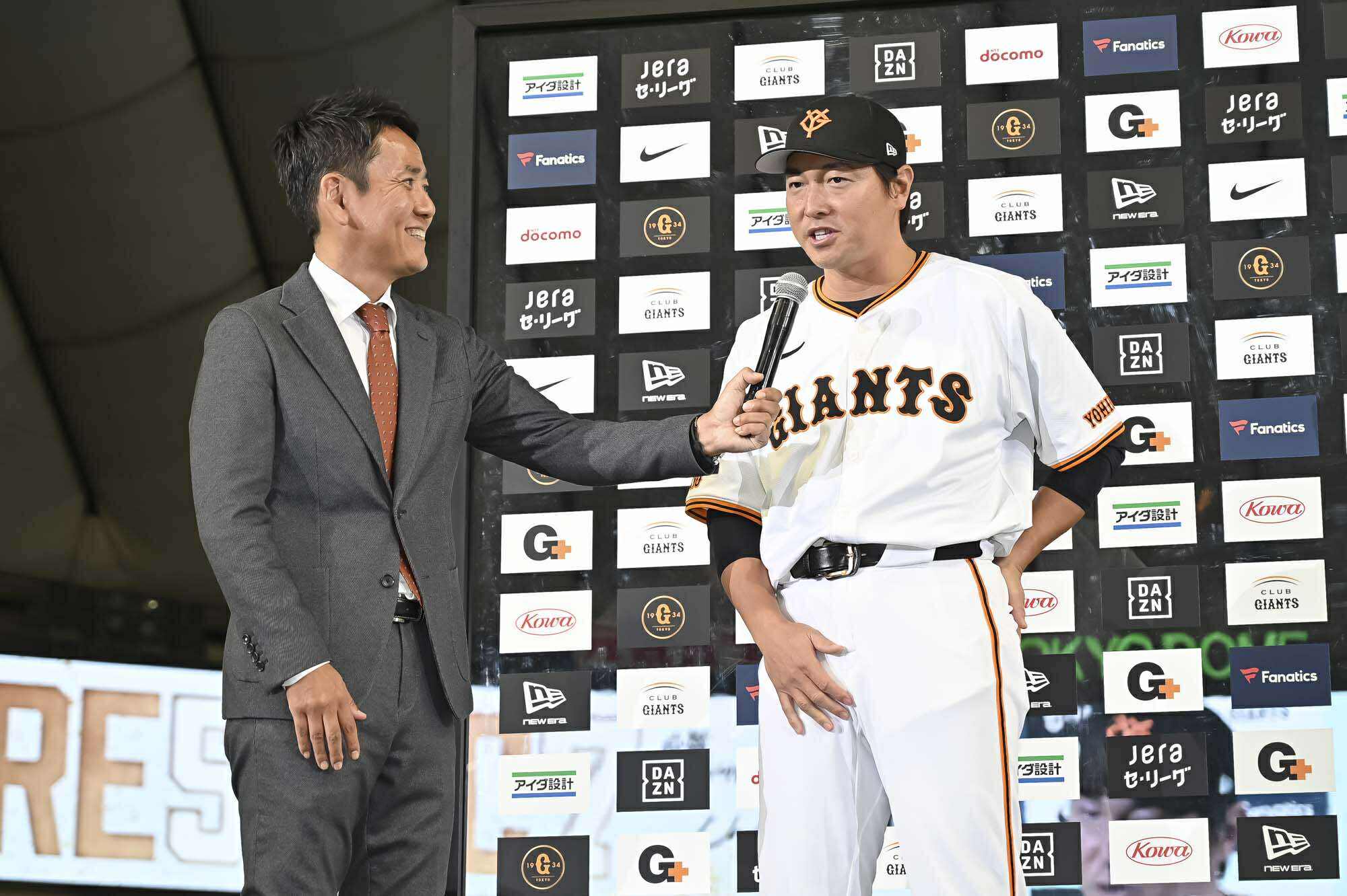 長野選手のあいさつは、本人の希望により、異例のヒーローインタビュー形式。アナウンサーからの「きょうのヒーローは長野久義選手です。いま、この景色、どう映っていますか?」という問いには