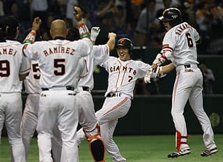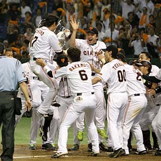 10/22 サヨナラ満塁本塁打を放つ。内海投手は最多勝投手に